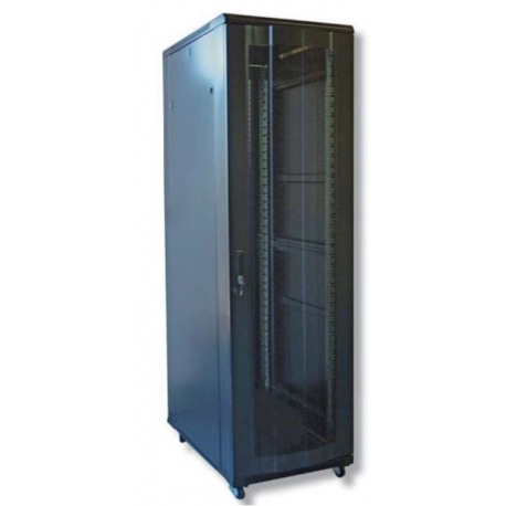 Baie de brassage 42 U supportant une charge maximum de 800 kg. Largeur 800mm x Profondeur 800mm. Porte vitrée à l'avant, porte perforée à l'arrière.