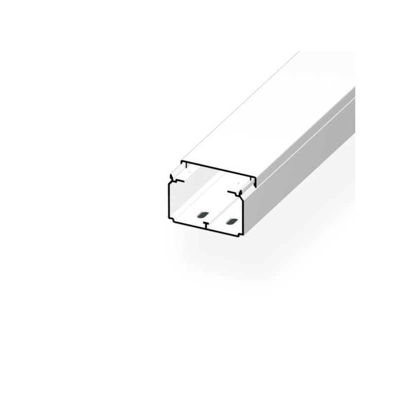 Moulure 60x40 PVC blanc,1 compartiment, fond pré-percé, Lg. : 2m - Prix au m.